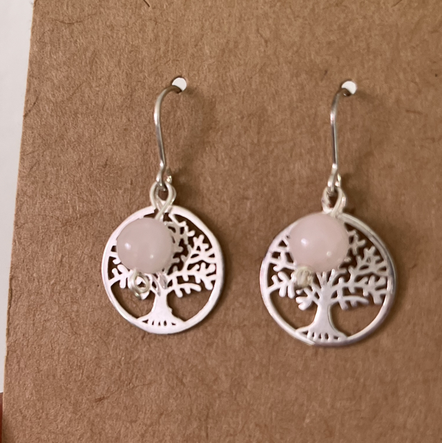 Boucles d’oreilles arbre de vie - quartz rose - argent 925