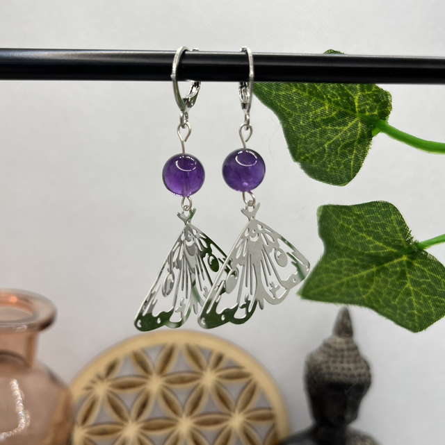Boucles d’oreilles papillon améthyste
